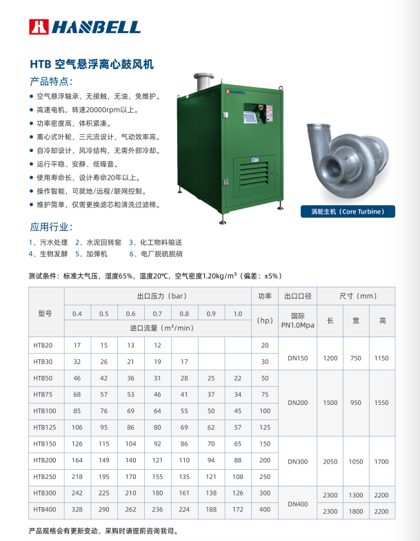 HTB空氣懸(xuan)浮離心鼓風機(jī)産品特點: