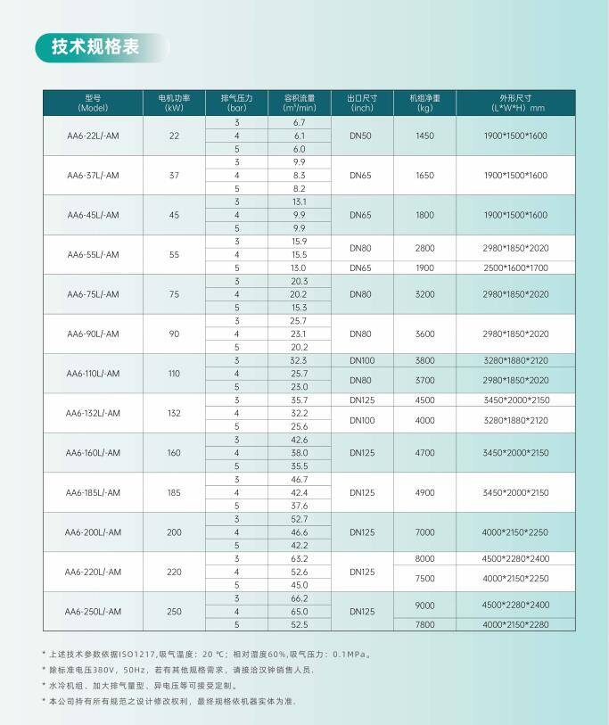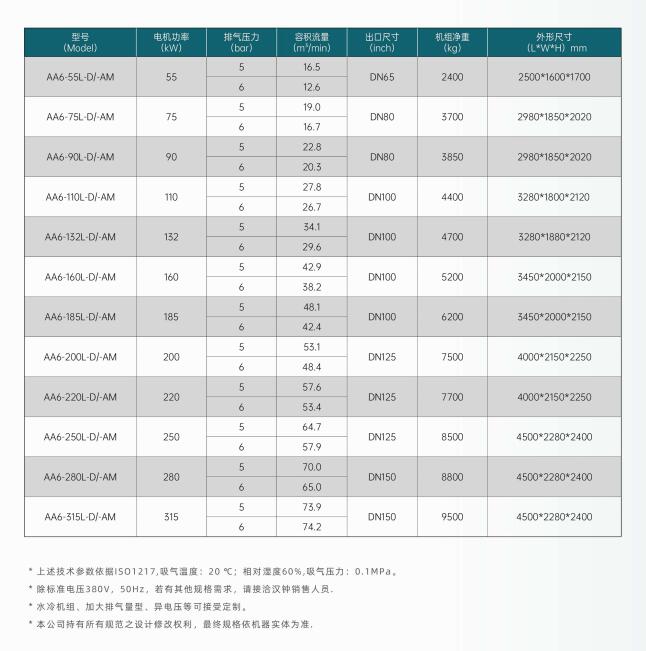 壓力0.3mpa、0.4mpa、0.5mpa機(jī)型AA6-55L-D-AM、AA6-75L-D-AM、AA6-90L-D-AM、AA6-110L-D-AM、AA6-132L-D-AM、AA6-160L-...